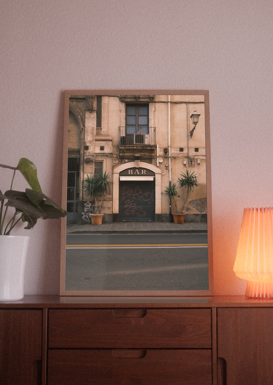 Ein Stück echtes Italien für deine Wand. Dieses Poster fängt die unaufgeregte Schönheit einer typischen Bar während ihrer Siesta ein und strahlt die ruhige Atmosphäre eines sonnigen Nachmittags aus.