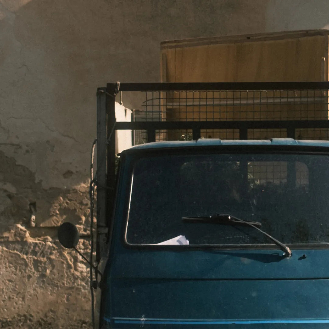 Das Herz Italiens im Kleinformat. Dieses Poster zeigt den ikonischen Lieferwagen in der warmen Mittagssonne, ein Bild von Gelassenheit und charmantem Stil.