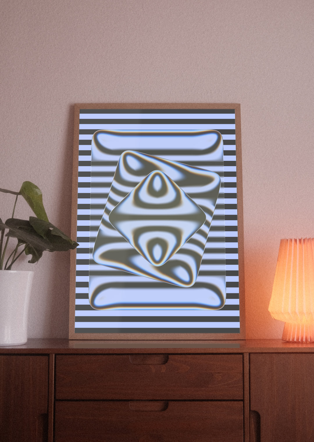 Ein optisches Spiel aus Bewegung und Wandel. Dieses Poster fängt die Dynamik des Fortschritts ein, indem es die Schichten des Lebens in einem fließenden, abstrakten Design visualisiert.