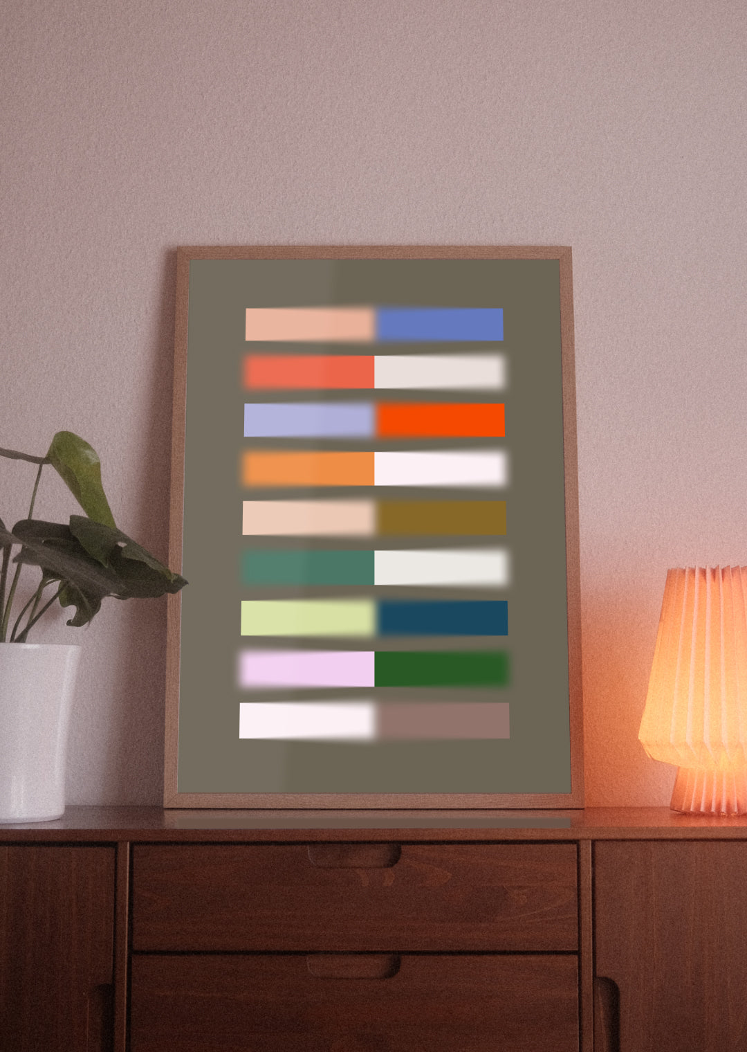 Eine visuelle Symphonie der Farben. Dieses Poster fängt die einzigartige Harmonie sich ergänzender Töne ein und bringt eine moderne Ästhetik in deinen Raum.